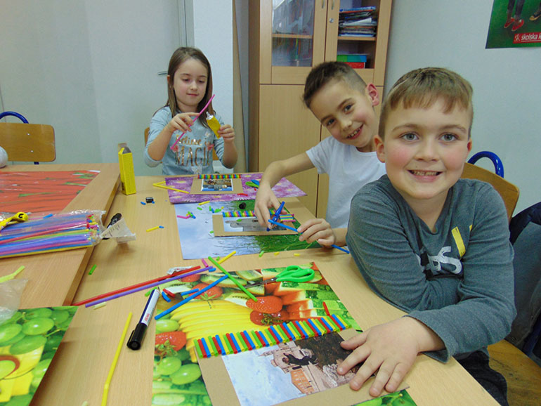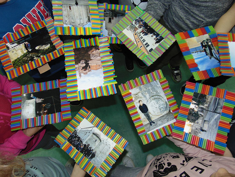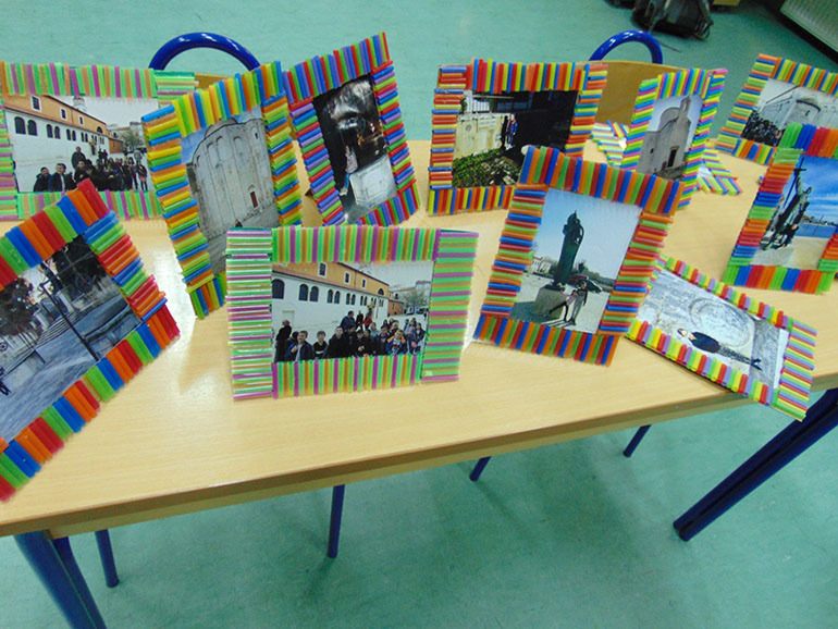 Na satu likovne kulture izradili su okvir za svoju fotografiju. Dizajn slike. Rub okvira učenici su popunili slamkama s pravilnim nizom boja. Velika uspomena za male istraživače.