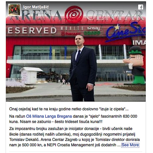 – Tomu znam već godinama, jer smo odigrali čitav mnogo nogometnih utakmica. Nikad nije volio gubiti, čak ni u prijateljskom susretu, uvijek je davao sve od sebe i nije se mirio s prosječnošću. Lidersku crtu s terena samo je prenio na svoje poslovanje, gdje je podjednako uspješan – napisao je Matijašić na Facebooku i govori kako je isprva mislio da je krivo čuo kad mu je Dekalić rekao iznos koji će škola dobiti.