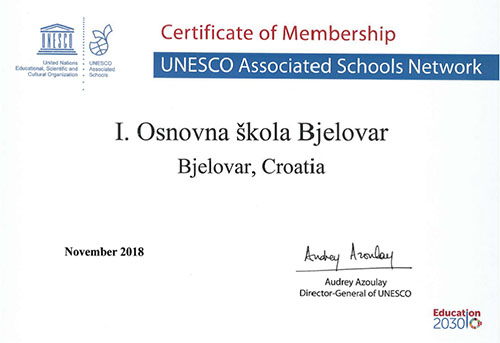 Školske koordinatorice, učiteljica Engleskog jezika Martina SUPANČIĆ i učiteljica Glazbene kulture Danica BARIŠIĆ već četvrtu godinu provode niz projekata i aktivnosti koje promiču UNESCO-ove vrijednosti na nacionalnoj i međunarodnoj razini.