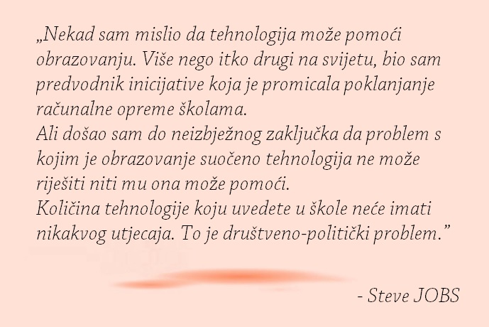 Iako smatram da ne treba veličati tehnološke velikane poput Stevea Jobsa i Billa Gatesa, njihovo iskustvo i dugogodišnji rad u ključnim društveno-kulturnim strukturama [npr. tehnoloških divova poput Applea i Microsofta] katkad donosi korisne uvide za ostale.