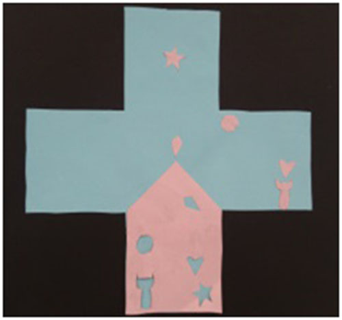 Drugi je učenik doslovce podijelio križ na četiri dijela. Zamolio sam ga da pokaže na koji način četiri identična oblika zajedno čine križ. Jednoga sam tražio da nacrta rješenje, dok sam drugoga zamolio da izreže križ i dvaput ga savine. Zatim sam prozvao učenike koji su imali nešto drukčija rješenja.