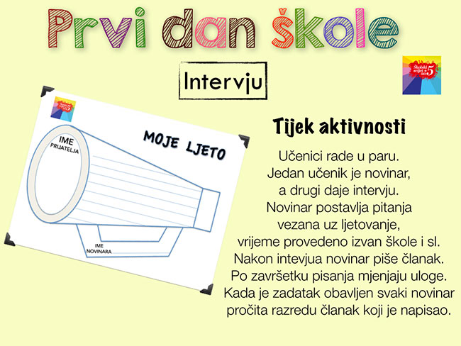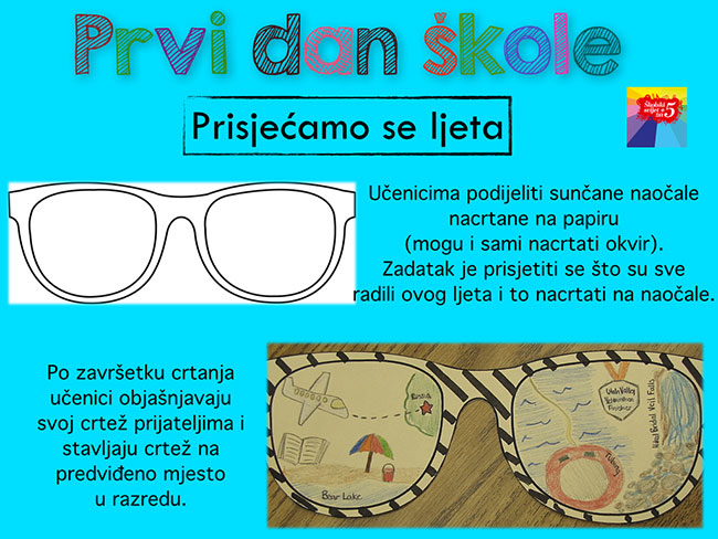 I onda dragi naši nastavnici i školarci, za Vas: imamo pripremljene tri aktivnosti... koje vam mogu pomoći već prvi dan... da se prisjetite proteklih ferija.... da započnete godinu školsku aktivno ...