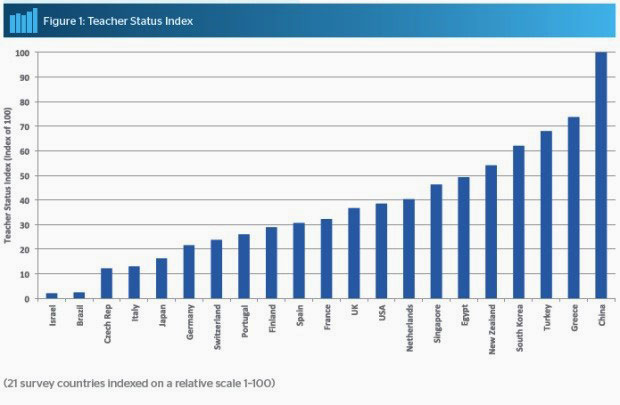 Kineski su učitelji gotovo 100 posto cjenjeniji od svojih kolega u Izraelu. Ravnatelji se u Velikoj Britaniji više uvažavaju nego učitelji u bilo kojoj zemlji svijeta.