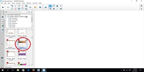 Nakon što otvorite program za pametnu ploču idite na mapu Lesson Activity Toolkit 2.0 + Interactive and Multimedia + Multiple choice.
