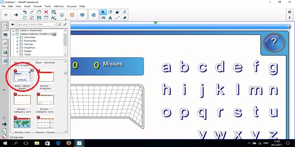 Nakon što otvorite program za pametnu ploču idite na mapu Lesson Activity Toolkit 2.0 + Interactive and Multimedia + Anagram