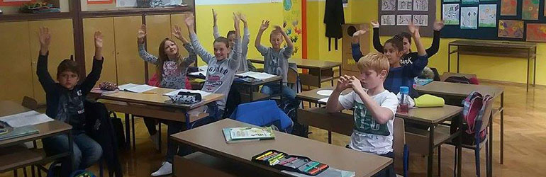 U Osnovnoj školi Tina Ujevića održana je zanimljiva radionica učenja hrvatskoga znakovnog jezika. Radionicu u 4. a vodila je Ana PUĆE, pripravnica u školi.