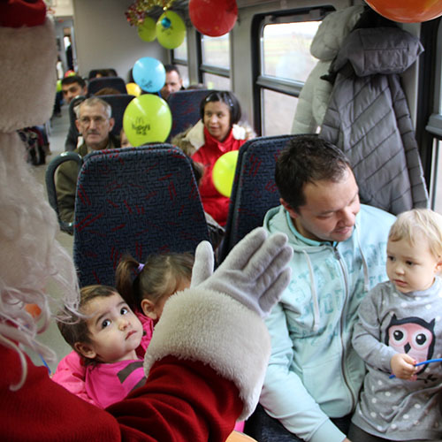 Vesela vožnja u božićnom vlaku popunjenu do posljednjeg mjesta trajala je tek nešto manje od sat vremena, kada je stotinjak mališana u pratnji svojih roditelja imalo priliku družiti se s Djedom Mrazom, pjevati božićne pjesme i plesati, a za njih su pripremljeni i baloni, slatki božićni paketi i sokovi.