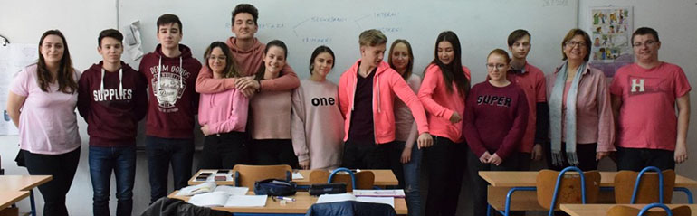 „Danas smo svi u ružičastim majicama kako bismo obilježili Dan bez nasilja, bilo kakvog oblika, a koje je svakodnevno prisutno u svim okruženjima. Obilježava se zadnje srijede u veljači. S ovom akcijom podižemo svijest o problemu vršnjačkoga nasilja. Poznat je po tome što se učenici i profesori oblače u ružičaste majice, ali i po poruci: 'Ne nasilju među vršnjacima.' Našim činom želimo pokazati da nasilje nije rješenje problema.”