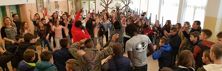 U prijateljskom i veselom ozračju nastavljen je projektni dan kroz radionice, a jednu od njih vodio je Prince Wale Soniyiki koji je upoznao učenike i učitelje s jezikom yoruba, koji je jedan od mnogobrojnih jezika Nigerije, te im je predstavio njihove običaje. Uz to, Commi Belde održao je glazbenu radionicu, a veselo je bilo i na sportskoj radionici koju je vodio Sadou Diagne. Zainteresirani su mogli sudjelovati i u keramičkoj radionici koju je vodila Nevzeta Zdunić, koordinatorica projekta, a Abi Seydi plesačima je približio kulturu Mandinka iz Senegala. Na kraju su se svi osladili nigerijskim specijalitetom puff puff, koji je sličan fritulama, a pripremio ih je Prince Wale Soniyiki.