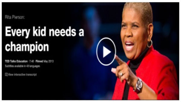 Rita Pierson, učiteljica s 40 godina iskustva, jednom je čula kolegu kako kaže: „Ne plaćaju me da volim ovu djecu.” Njezin je odgovor bio: „Djeca ne uče od ljudi koji im se ne sviđaju.” Ovaj je govor poziv na buđenje svim učiteljima da počnu vjerovati u svoje učenike i doista se povežu s njima na stvarnoj, ljudskoj razini.