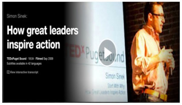 „Simon Sinek ima jednostavan, ali moćan model za poticanje vodstva, a sve počinje zlatnim krugom i pitanjem 'zašto?'. Njegovi primjeri uključuju Apple, Martina Luthera Kinga i braću Wright…”