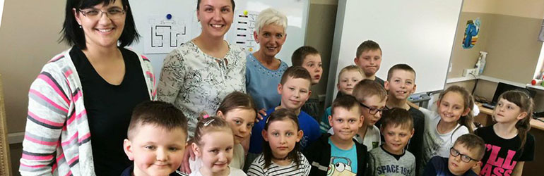 Mentorice Marzena (učiteljica razredne nastave i defektologinja) i Gosia (učiteljica engleskog jezika) demonstrirale su rad s različitim internetskim aplikacijama za učenje na računalu. Svaki učenik na satu ima osigurano korištenje laptopa i sve učionice imaju pametne ploče pa bez problema mogu na takav, zabavan način učiti, uvježbavati ili ponavljati gradivo. Svoje vještine grafomotorike razvijaju i pomoću ozobota. Ozobot je „mali robot” koji slijedi pravilno nacrtane linije isprekidane zadanim kodovima. Učenici su vrlo zainteresirani za rad s ozobotima, a prema pričanju učiteljice Marzene ozoboti su dobrim dijelom zaslužni za njihov napredak u grafomotorici.