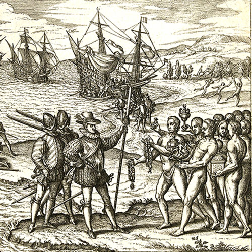 Theodor de Bry (1594.): Iskrcavanje Kolumba 1492.