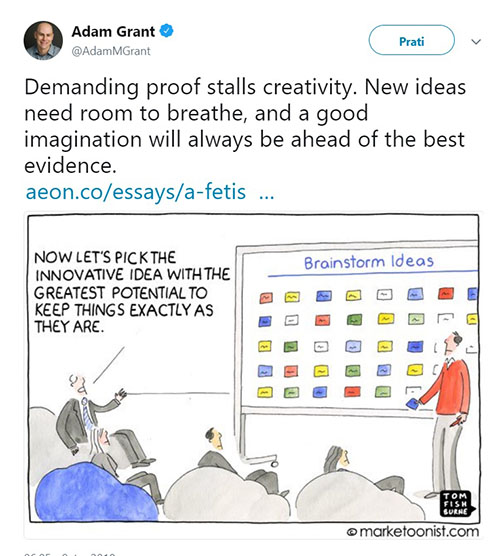 „Zahtijevanje dokaza koči kreativnost. Nove ideje trebaju prostora da bi mogle disati, a dobra sposobnost zamišljanja uvijek će biti ispred najboljih dokaza.”
