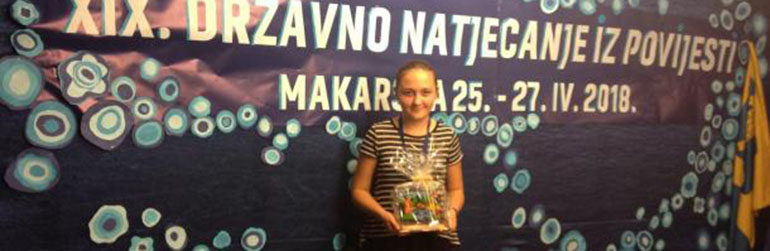 Lucija Jurenec, učenica 7. a razreda OŠ Izidora Poljaka iz Višnjice, osvojila je prvo mjesto na Državnom natjecanju iz povijesti, koje je prošli tjedan održano u OŠ o. Petra Perice u Makarskoj.