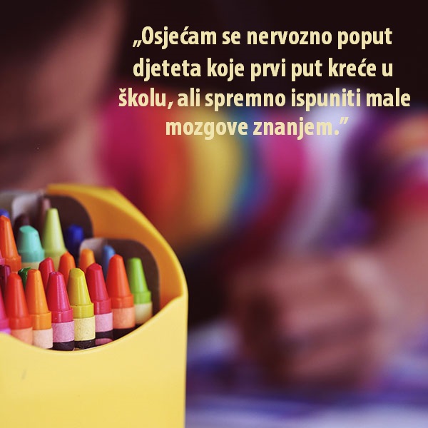 „Uzbuđena sam zbog nove školske godine, a opet nervozna zbog izazova rada s djecom i roditeljima o kojima sam slušala priče te zbog rada s novim timom učitelja i voditelja.”