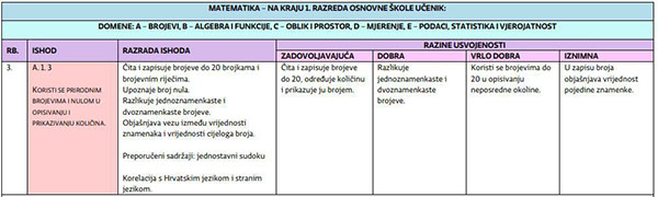 Razine usvojenosti ishoda učenja u inicijalnim inačicama kurikularnih dokumenata – prema novom predlošku, navodit će se samo razina usvojenosti ‘dobar’