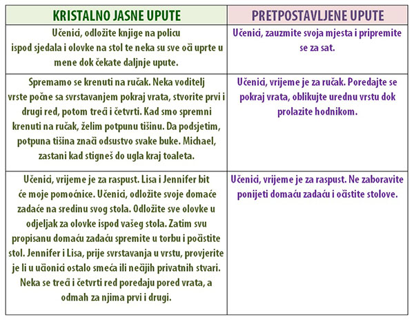 Glavni je problem u davanju uputa ili bolje rečeno nedostatku uputa stvaranje pretpostavki da učenici već znaju što se od njih očekuje. To je uobičajeni nesporazum u svakoj učionici koji stvara prepreke. Kad biste ušli u bilo koju učionicu nižih razreda osnovne škole, zatekli biste učitelja kako neprestano daje različite upute.