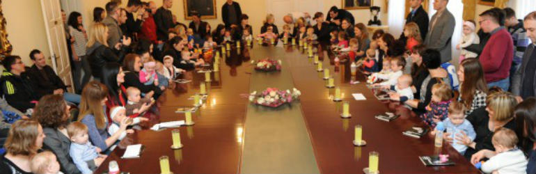 Na tradicionalnom prijemu u gradskoj vijećnici bilo je ih 34 rođenih u lipnju i srpnju prošle godine. Uz čestitku roditeljima, primili su na dar knjigu, člansku iskaznicu Gradske knjižnice i čitaonice i po 1000 ili 3000 kuna, ovisno o tome koje su dijete u obitelji.