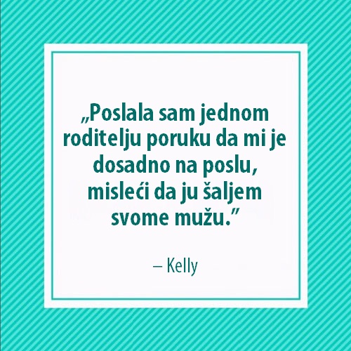 „Htjela sam poslati pusu svojoj najboljoj prijateljici kolegici s posla dok sam prolazila pored njezine učionice, ali nisam se mogla usredotočiti i greškom sam poslala pusu učeniku kojeg sam slučajno pogledala, jer je stajao pored nje.” – Megan
