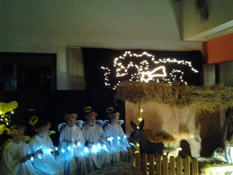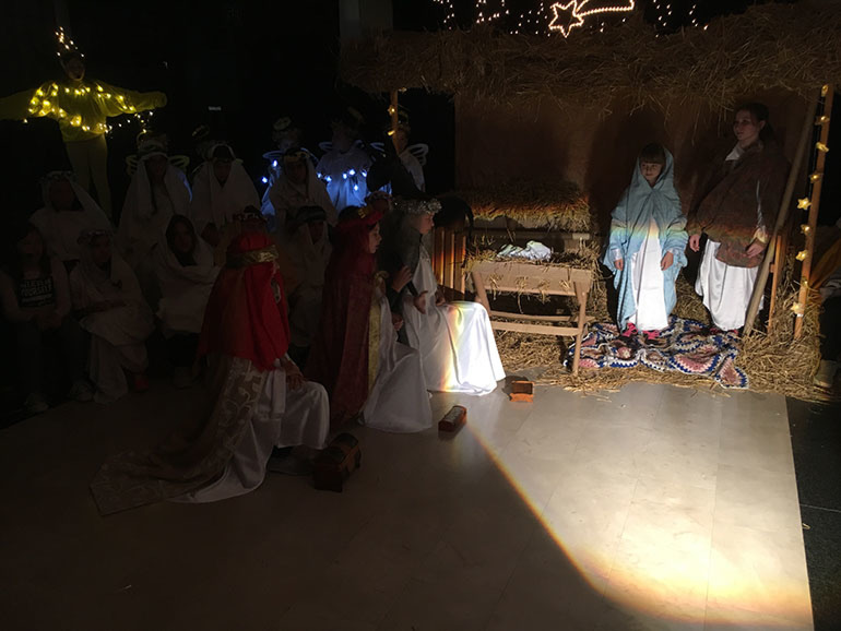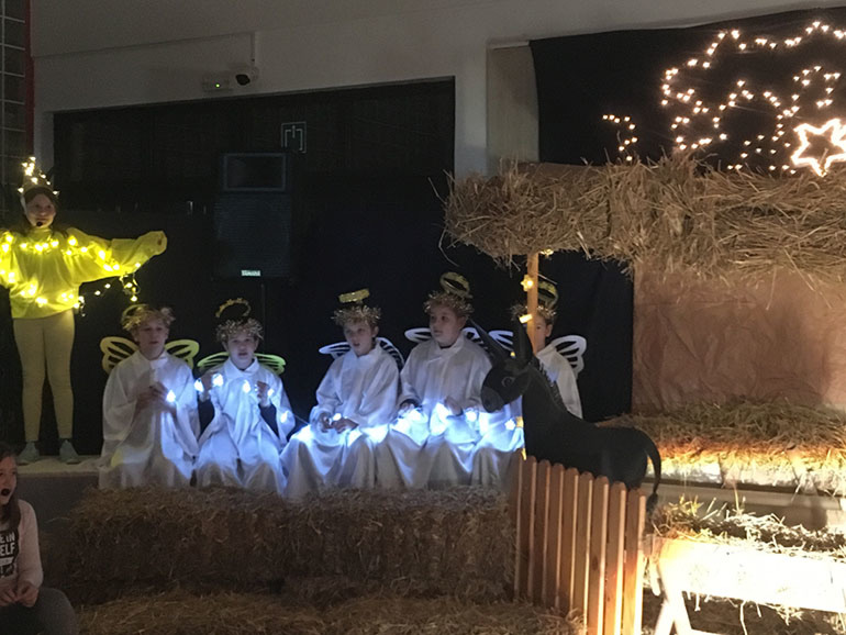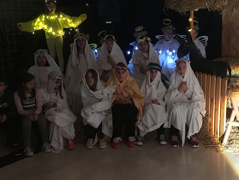 Učenici 4. b razreda sa svojom učiteljicom Branislavom Šimić uprizorili su nam Zvijezdu za treće tisućljeće u kojem su vjerno prikazali težak i mukotrpan put Josipa i Marije i čudesno porođenje u štalici na slami. U ulozi Josipa i Marije bile su Elena Živković i Marija Blagojević, anđeli su bili Gabriel Jukić, Luka Mijić, Marko Krnjić, Nikolina Stojanović, Tomislav Matinac, Leon Jovanovac i Ana Šimić, a tri kralja predstavljali su Martina Žigmundovac, Marija Mijatović i Ela Božić. Zvijezdu je oblikovala Tesa Dretvić, dječaka Antonio Mikinac i djevojčicu Petra Nikolić. Iza svakog prizora slijedila je prigodna pjesma i prekrasni dječji glasovi. Ozarenih lica pjevali su U to vrijeme godišta, O pastiri, Spavaj mali Božiću, Radujte se narodi, Veselje ti navješćujem…