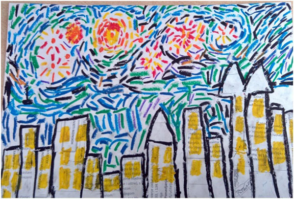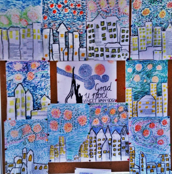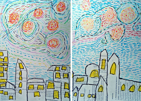 Slikanje zvjezdane noći iznad našega grada kombiniranom tehnikom po uzoru na V. van Gogha
