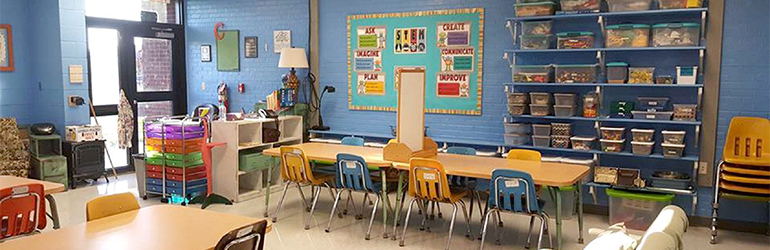 Istraživačice koje su 2015. godine analizirale 153 učionice u Ujedinjenom Kraljevstvu preporučuju da se na zidove stavlja sadržaj koji će učionici dati veselo ozračje, ali je ne će učiniti kaotičnom, što znači da treba ostaviti između 20 i 50 posto prostora bez ikakvih ukrasa.