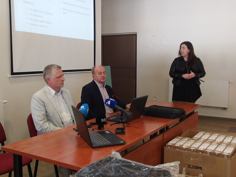 U ovom je trenutku u našim osnovnim školama postavljeno 29 projekcijskih platna, 28 projektora, a sad ćemo uručiti i 30 računala, svakoj školi po 14 laptopa i dva za Učenički dom.