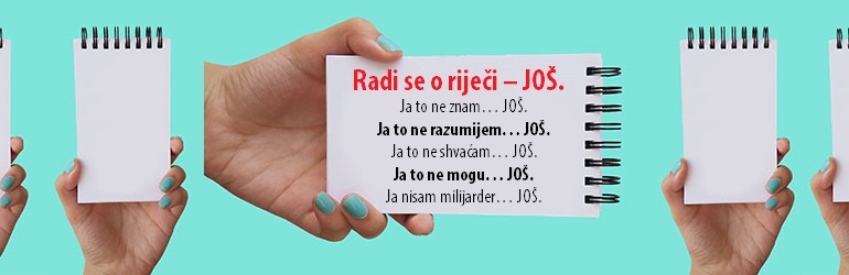 „Još” je znak priznanja da je učenje teško i frustrirajuće. „Još” također podrazumijeva da je učenje stresno, a stres dio svakodnevice, ali to ne znači da mu moramo dopustiti da postane dio naših života. „Još” nam govori da nema ništa sramotno u traženju pomoći kad nam je potrebna i ako nešto ne razumijemo.