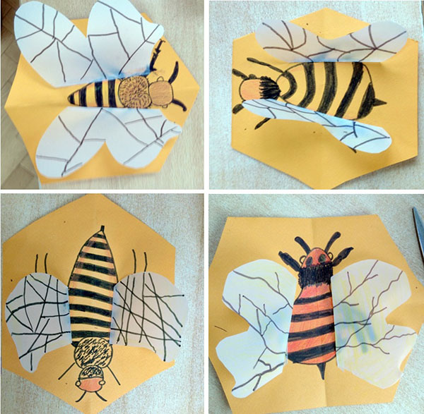 oblikovati pčelu na plohi različitim crtama, prostorno-plastički izraziti volumen oblikovanjem krila koja ulaze u prostor.