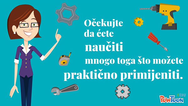 Koristeći se animacijama, videozapisima, fotografijama, križaljkom, kvizom i drugim popularnim igrama poput memorije, e-Knjiga na interaktivan način pojašnjava i zorno pokazuje sve prednosti strukovnog obrazovanja sektora strojarstva čiji su obrazovni programi mahom deficitarni i stipendirani.