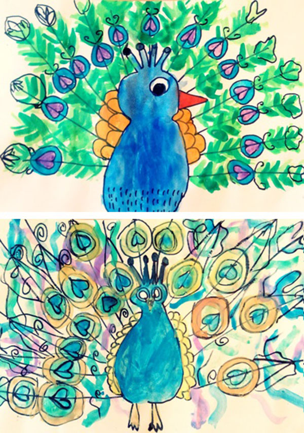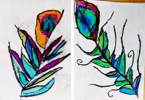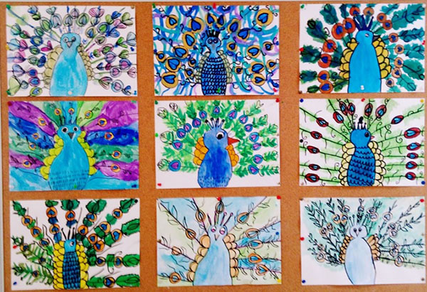 a) stjecanje znanja: uočavati kako priroda stvara simbolične i jedinstvene oblike, naučiti da su mužjaci u prirodi okićeni sjajnim perjem, posebno paun; uočavati oblik pera, uočavati i imenovati boje i strukturu pera, naučiti upotrebljavati tehniku pastel