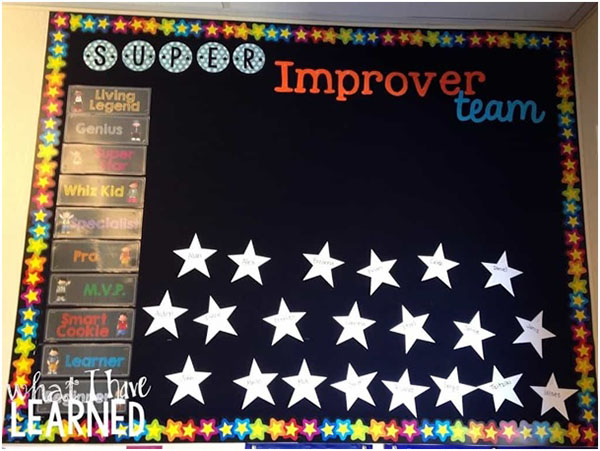 Pridružite se „Timu za izniman napredak” . Zidni plakati (uz pomoć kojih možete bilježiti napredak učenika) ovdje su besplatni. Dodala sam im i zvijezde koje sam izrezala od papira. Vidjeli su plakate, ali ne i zvjezdice, jer sam ih pripremila u petak poslijepodne, nakon što su otišli kući.