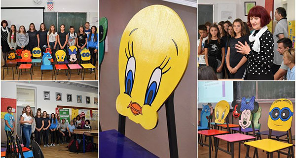 Stolice su na restauraciju čekale više od 15 godina, a onda su učenici uzeli stvar u svoje ruke. Izradili su stolice vedrih boja i s kreativnim motivima