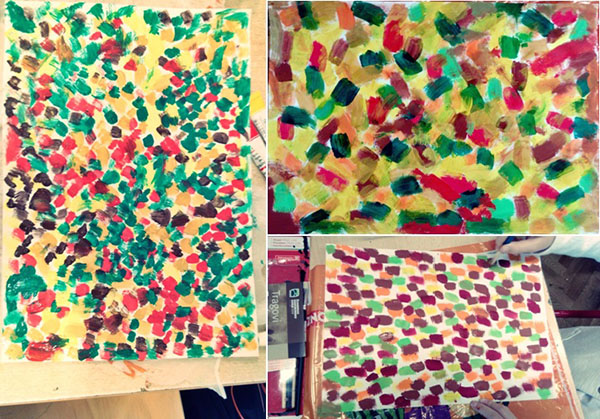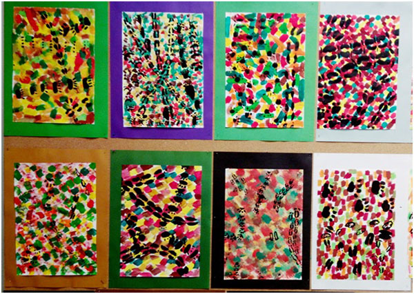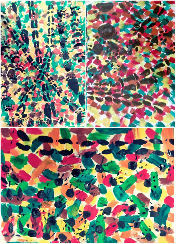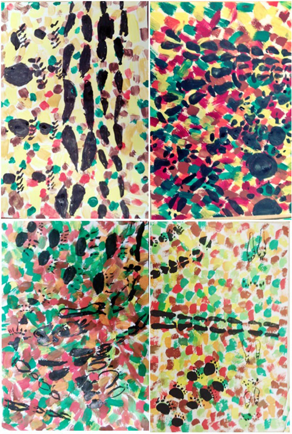 Učenici su posebno uživali u jesenskom tepihu lišća, zvuku šuštanja, čak su se u jednom trenutku gađali lišćem okupani toplinom listopadnog sunca. U drugoj su radionici prepoznavali koje tragove ostavljaju životinje koje smo pronašli u lišću, na humku zemlje. Sve me je to potaknulo da tu njihovu znatiželju i upijanje novih činjenica iskoristim za oblikovanje nastavnog sata likovne kulture. Za rad sam odlučila da temperama, brzim potezom dočaramo jesenski tepih, kojeg su se mnogi još živo sjećali: zvukovno i slikovno. A tragove smo prikazali crnim tušem i kistom.