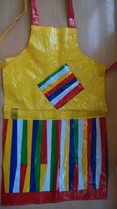 Vesele boje na vrećicama Školske knjige potaknule su nas da ih iskoristimo na najbolji mogući način.Tako smo od njih na satovima likovne skupine sašili eko-pregače koje nam koriste kad god nešto slikamo ili oslikavamo. Sašili smo i nove ukrasne vrećice, a i male eko-pregačice za lutke.