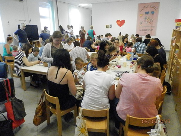 U kreativnim radionicama zajedno su izrađivali lutke, slikovnice i sve što su se dosjetili. Dokazali smo u igri „Prepoznaj mamu po mirisu“ i znanstvenu činjenicu kako svako dijete i zavezanih očiju po mirisu zna koje je njegova mama.