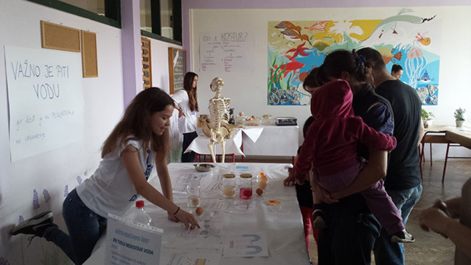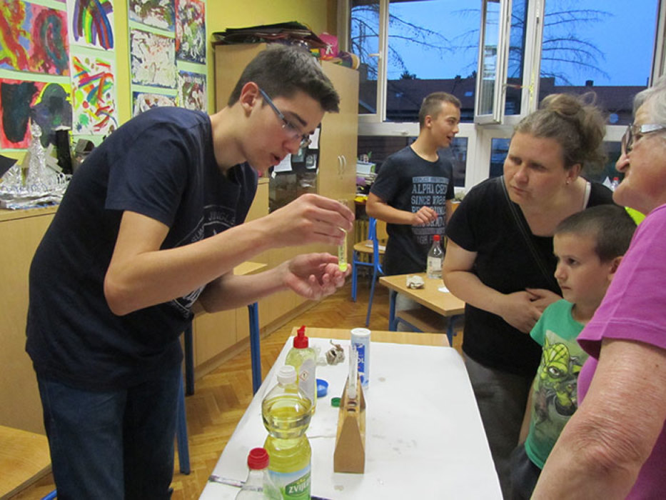 Učenici su prikazali i objašnjavali posjetiteljima kiselost namirnica, količinu šećera u pićima, stanice leđne moždine prekrasne ružičaste boje mogli su vidjeti pod mikroskopom, „erupciju“ vulkana, prisjetiti se zaboravljene botanike….