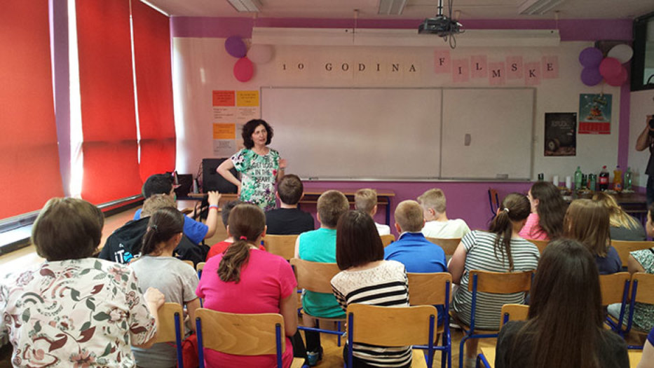 Na drugom kraju škole slavila se 10. godišnjica Filmske skupine i prikazivali su se svi nagrađeni filmovi skupine.