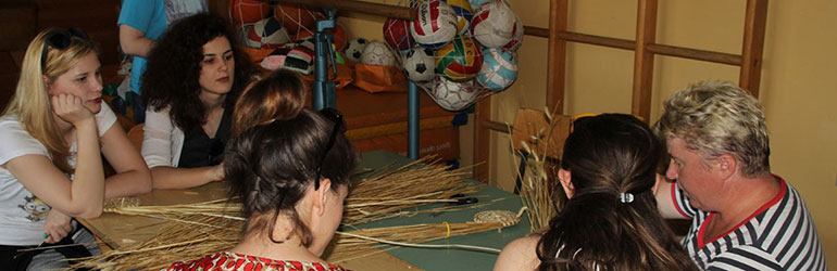 Nakon pozdravnih govora uslijedila je nastava tijekom koje su mali zadrugari studenticama prikazali kako izrađuju tradicionalne predmete kameničkog kraja – logožar iz trstine, korpice iz ražene slame, svirala i igračake iz drva te domaći vez na platnu.