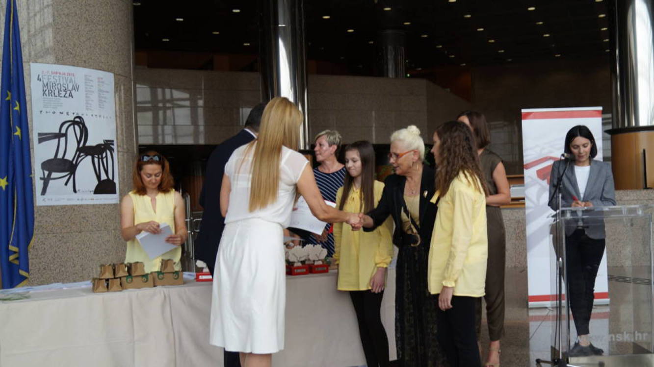 I zaista. Tamo je Dora Martinuš sa svojim tatom, naša profesorica gđa Josipa Hopek te mnogi državni i međunarodni prvaci osnovnih i srednjih škola iz različitih predmeta i šest kategorija zborova. Oni su u pratnji svojih mentora, roditelja i svih onih koji žele prisustvovati svečanosti jednog izuzetnog trenutka, a to je dodjela Oskara znanja za izvrsne rezultate u pojedinim nastavnim predmetima i izvannastavnim školskim aktivnostima.