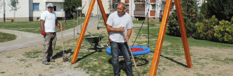 Na dječjem igralištu u Šabanovoj ulici montirane su dvije nove sprave – njihalica za djecu s posebnim potrebama te ljuljačka s košarom stiliziranom u obliku gnijezda.