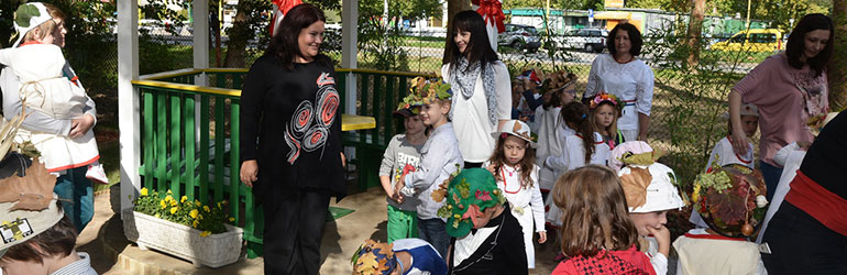 ... odijevaju Crvenkapičinu haljinu, lovčev šešir dječaci stavljaju na glavu…