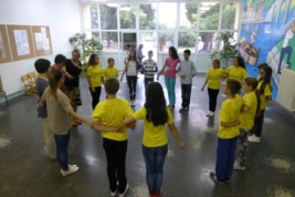 Nakon upoznavanja i razmjene prigodnih darova, naši učenici obučeni u majice s nazivom škole sudjelovali su na tehničkoj, glazbenoj i likovnoj radionici.