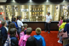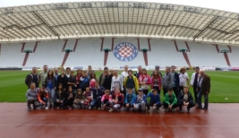 Obilazak stadiona Poljud protekao je bez problema i učenici su se mogli upoznati sa slavnom poviješću najvećega hrvatskoga nogometnoga kluba. Naš vodič ispričao nam je brojne zanimljive priče iz povijesti HNK Hajduk, upoznali smo se s jednim od najljepših stadiona na svijetu, posjetili smo novinarski salon, VIP ložu, tribine i sam travnjak gdje smo se usprkos jakoj kiši i fotografirali. Osim toga, posebno je upečatljiva bila i trofejna dvorana.