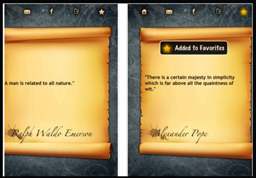 Više od 53 000 slavnih citata kao na dlanu. Postanite pametniji i mudriji čitajući poznate citate slavnih ljudi. Ova aplikacija je jednostavna za upotrebu, autore možete pretraživati prema popisu ili napraviti pretragu. Zatim možete prolistati knjigu citata tako da protresete mobitel ili kucnete prstom po njemu.
