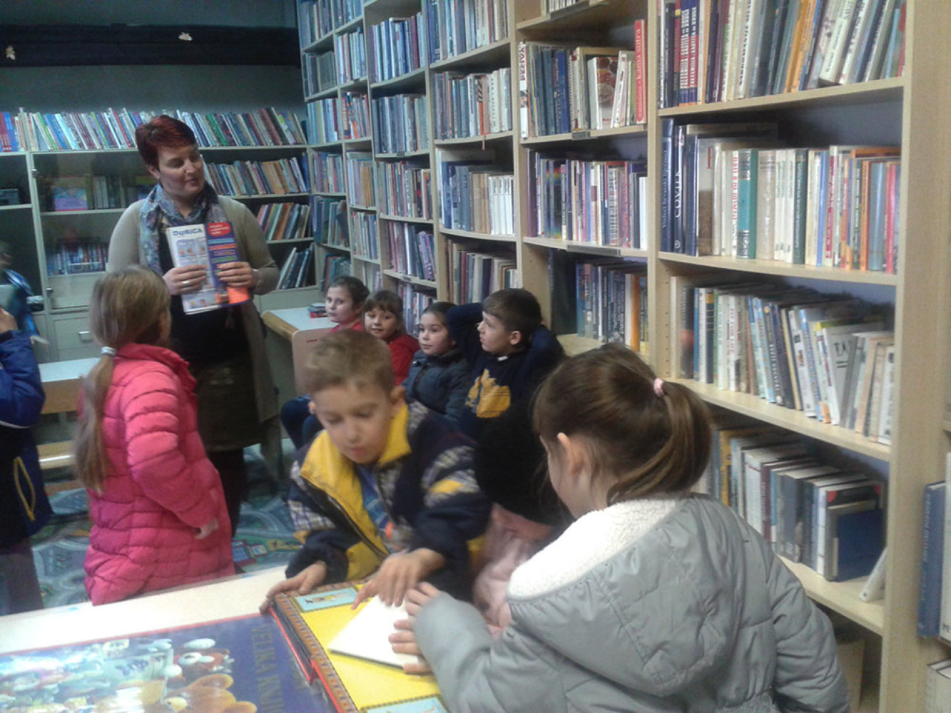 Školarci su se razveselili knjigama različitih sadržaja i veličina. Upoznali su enciklopedije, a najviše su se zanimali za bajke i knjigu u 3D tehnici. Voditeljica općinske knjižnice 'Matija Gubec', Natalija Kožić Lukačević upriličila je i mali kviz. Najbolji su nagrađeni časopisom Smib, što je učenike posebno obradovalo, jer se sjećaju tete Željke Horvat Vukelja i njezinih Pričokaza, koje su gledali jos u vrtiću.