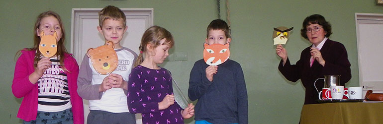 ... odijevaju Crvenkapičinu haljinu, lovčev šešir dječaci stavljaju na glavu…