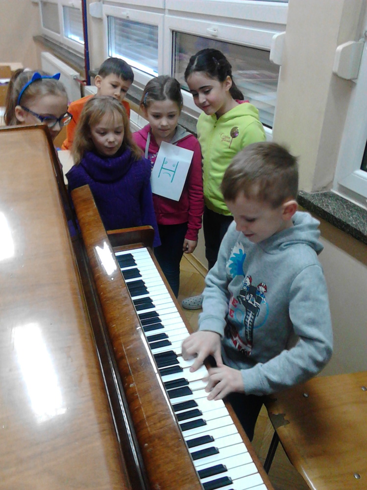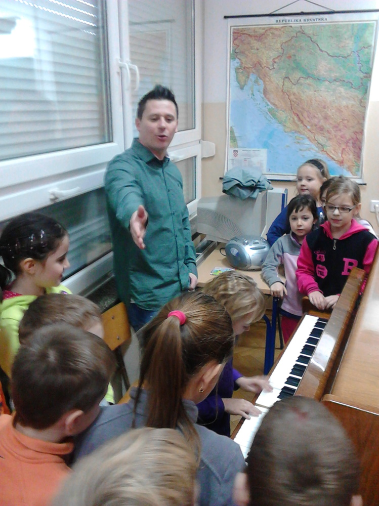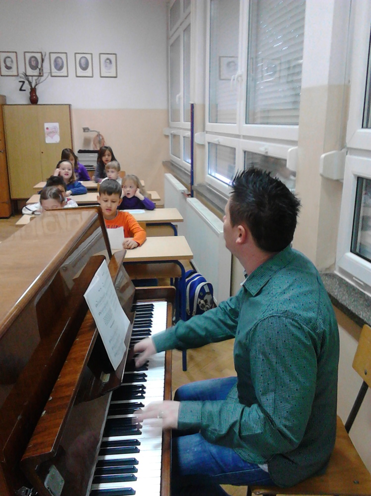 Sat je održao roditelj Aleksandar REBERNIK, profesor glazbene kulture. Uz glazbu s pijanina učenici su naučili pjesmu Združena slova. Na kraju sata i sami su pokušali zasvirati.
