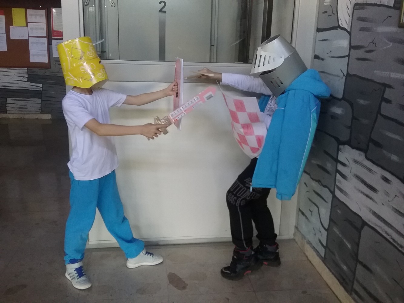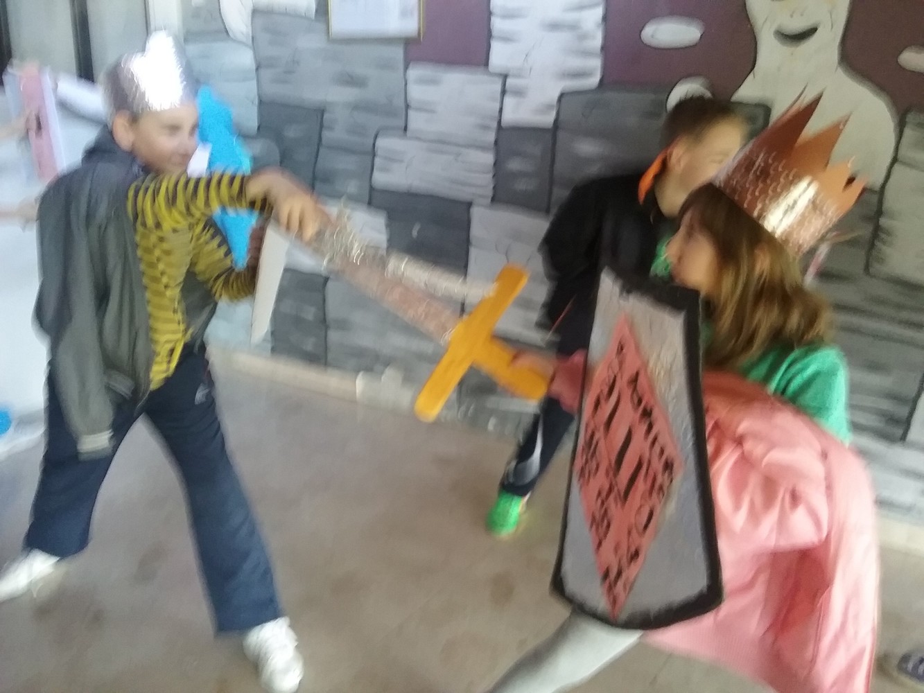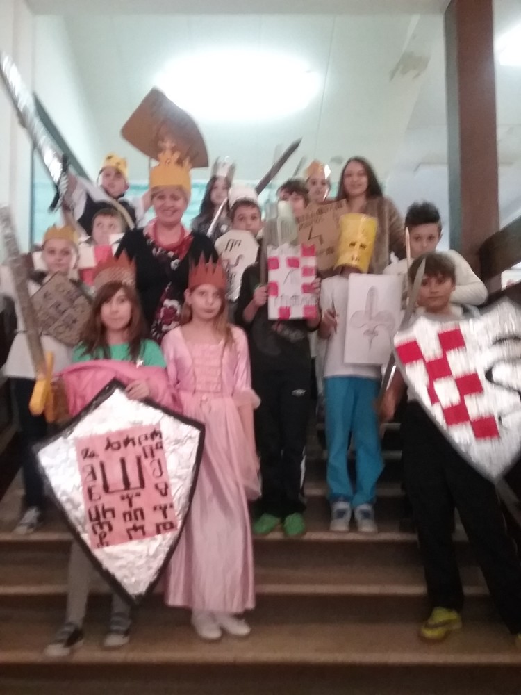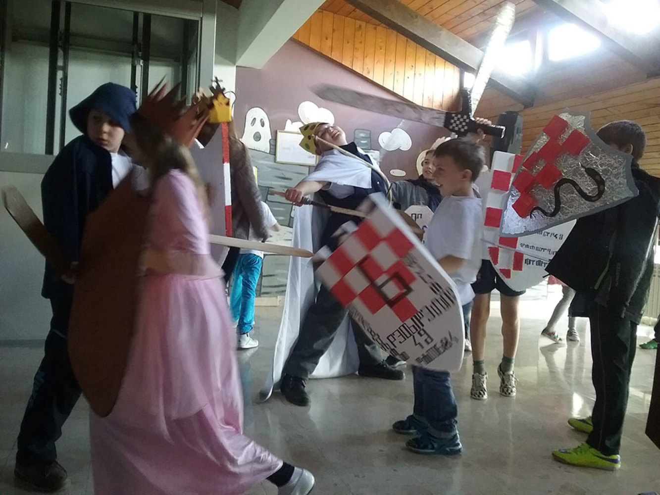 Na likovnom su učenici glagoljicom ispisivali obiteljske grbove kojima su potom uresili svoje štitove. Roditelji učenika pomogli su u izradi sablji, zaštitnih kaciga i kruna.vi, kneginje i kraljevi u zanimljivom dijelu potkrovlja škole okušali su se u svojim borilačkim vještinama i uprizorili „pravo bojno polje“…
